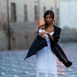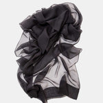 Our gossamer-light silk Georgette wrap in classic black is soft, flowing, and incredibly versatile—perfect for adding a touch of femininity to any outfit.