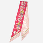 Sabrina is a long, skinny silk scarf (also called a bandeau or large twilly), made in Como Italy from 100% silk twill. Tie her around your neck, wrist, bag, or hair.