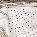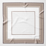 I paired this timeless polka dot pattern with a distinctive geometric border, carefully selecting a slightly off-white shade to ensure it complements all white shirts beautifully.
