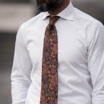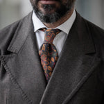 This tie reflects that same beauty, featuring a colorful floral print set against a classic black background. It's designed for the man with a refined taste who appreciates the artistry and quality of handmade Italian ties. This piece is a perfect blend of sophistication and bold style, ideal for making a statement.