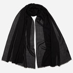 Generously sized to wear as a shawl, yet fluid enough to wrap as a scarf without bulk. The solid color keeps it versatile — minimal, refined, seasonless.