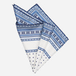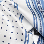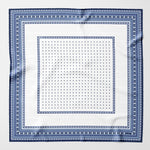 I paired this timeless polka dot pattern with a distinctive geometric border, carefully selecting a slightly off-white shade to ensure it complements all white shirts beautifully.
