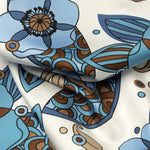 Featuring an abstract floral pattern in rich shades of blue and brown, perfect for adding an elegant twist to your look.