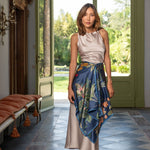 Made from 100% silk in a satin weave, it's buttery soft with a beautiful sheen that catches the light just right. It drapes beautifully, adding a soft, romantic touch to any outfit. Let this scarf be your go-to accessory for infusing a bit of Italian garden elegance into your daily style.
