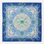 Printed on pure silk twill, it has a soft drape with enough structure to hold a knot beautifully. The 35" square is that timeless size women have worn for decades - around the neck, in the hair, tied to a bag.