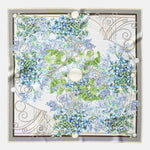 This square silk scarf showcases lilac blooms painted delicately by hand in watercolor, then transferred to luxurious silk.