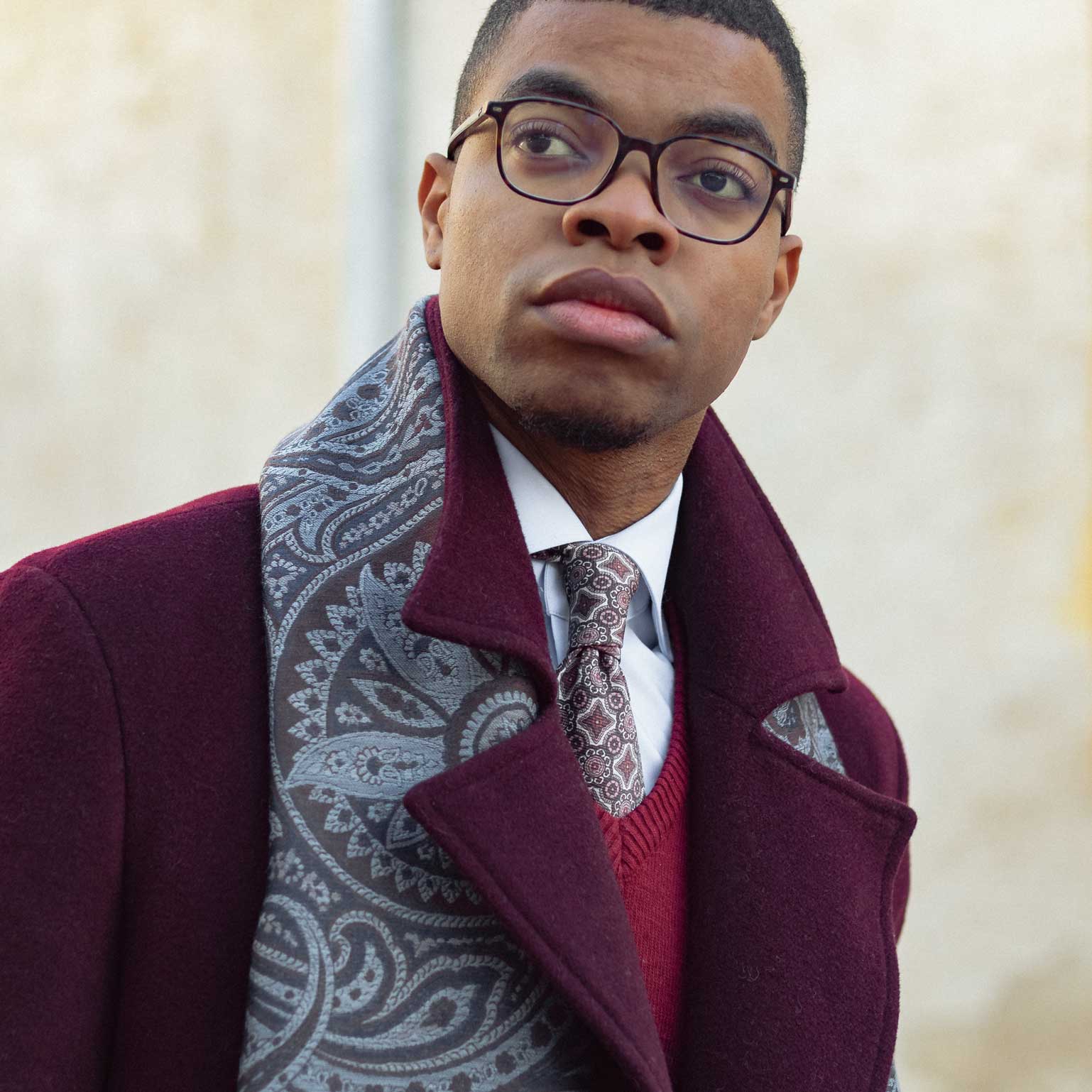 Elegant yet understated, it drapes effortlessly over an overcoat or jacket, adding polish to your look.