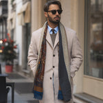 It’s one of my favorite spots, and this scarf brings together some of my favorite patterns—paisley, houndstooth, and a touch of geometric design, all wrapped into one.