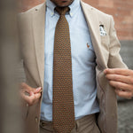 Inspired by the rich history and vibrant atmosphere of this famous horse race, the tie features a delicate bridle motif in gold and terracotta, printed on the deepest shade of brown.