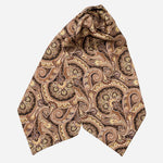 A traditional large paisley design in sophisticated shades of browns, bronze and yellow with a touch of sage will add an artistic flair to your look.