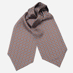 Embrace a piece of Roman heritage with our Barberini Ascot, featuring a blue classic medallion print on brown silk.