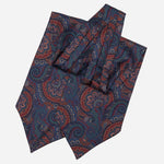 A traditional large paisley design in sophisticated shades of burgundy and blue will add an artistic flair to your look.