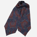 Inspired by the iconic Bugatti cars, celebrated for their beautiful design, this ascot reflects the elegance of those vintage automobiles with their large rounded fenders and curves, much like this paisley pattern.