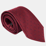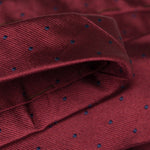 I named this tie after the beautiful city of Pisa, known for its rich history and timeless elegance. Just like Pisa’s enduring architecture, this woven jacquard tie in burgundy with navy blue polka dots brings a classic touch to your wardrobe.