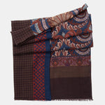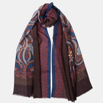 Aosta - Wool Scarf - Burgundy, Blue & Brown