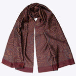 This generously sized scarf—27 x 74"—is woven from a luxurious, breathable blend of wool and silk, offering warmth without bulk. The traditional paisley pattern isn’t printed, but intricately woven on a jacquard loom, giving the fabric a subtle texture and depth that only skilled Italian craftsmanship can create.