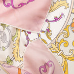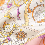 Printed on pure silk twill, it has a soft drape with enough structure to hold a knot beautifully. The 35" square is that timeless size women have worn for decades - around the neck, in the hair, tied to a bag.