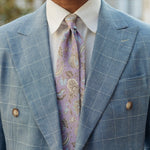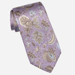 I named this tie after the Medici family, symbolizing power and refinement in Italian history. This beautiful lavender tie features a delicate floral print in soft earthy tans and pale blue.