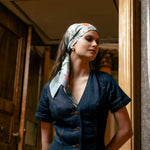 Lightweight, soft, and feminine. Tie it around your neck, your ponytail, your bag, the Ornella in dusty blue makes any outfit feel intentional.