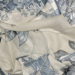 The print is a delicate floral with fruit and cornucopias—feminine, subtle, and timeless.