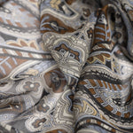 I adore paisley designs—they never go out of style. This one is particularly special, with its intricate pattern and harmonious blend of pale blues, brown, black and tan.