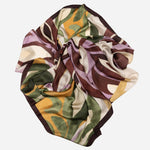 Made from the finest silk satin, this oversized square scarf showcases a bold abstract print in opulent, layered colors. The fabric’s natural luster and fluid drape create an air of understated indulgence, while its generous size allows for creative styling.