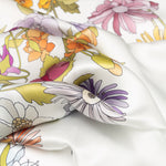 Its versatile oblong shape invites endless styling possibilities - loop it, drape it, tie it, wear it as a headscarf or even as a elegant belt. "Bouquet" isn't just an accessory; it's a portable garden, bringing the joy of flowers to your wardrobe year-round.