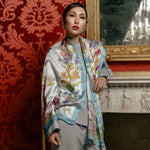 Bouquet - Long Silk Scarf - Sky Blue