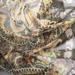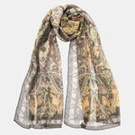 This long silk georgette scarf, with its intricate paisley pattern in shades of green, yellow, and a touch of orange, adds just the right accent to any outfit. It’s my go-to for bringing new life to my look, and I’m sure you’ll love it too!