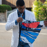 This pocket square works with everything from a classic navy suit to something more laid back. Strong lines. Deep tones. Just enough edge to stand out.