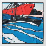 I re-created this design from a naval action painting by American artist Henry Lyman Sayen. I was drawn to the bold lines, movement and saturated colors.