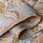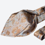 I named this tie after the Medici family, a symbol of power and refinement in Italian history. This beautiful dusty blue and steel tie features a delicate floral print in soft earthy tans.