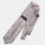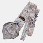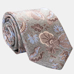 I named this tie after the Medici family, a symbol of power and refinement in Italian history. This beautiful pastel jade green tie features a delicate floral print in soft earthy tans and pale blue.