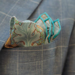 Elizabetta selected this classic William Morris wallpaper pattern, originally designed in 1881 for St. James's Palace, London, to feature in both a neckerchief and a pocket square.