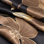 Adorned with rich bronze and brown florals on black, this exquisite piece blends timeless style with modern elegance.