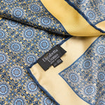 Named after the beautiful Tuscan city of Lucca, this neckerchief features a traditional medallion print in classic yellow and blue— a staple in men’s fashion.