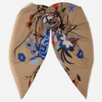 Wear it draped over your shoulders, belted over a coat, or wrapped high around your neck when the wind bites. It layers beautifully without the bulk. The bold floral print gives color brightness to your outfit.