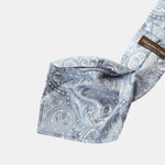 Handmade from luxurious, heavy-weight silk, it features a woven paisley motif in light blue, making it perfect for any distinguished event. Why settle for ordinary when you can have extraordinary?