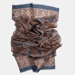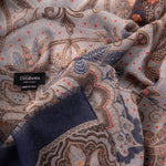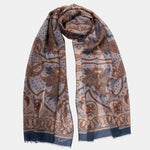 Inspired by the frescoed ceilings of the Uffizi Galleries in Florence, I designed this scarf with an intricate paisley pattern in steel blue with terracotta and blue.