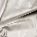 The shawl features a subtle, abstract tulip pattern woven in 2 shades of silver pearl grey - an understated yet captivating design that plays beautifully with light.