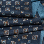• 100% silk twill: A soft, silky fabric traditionally used in men's tailoring for its look and its drape. Characterized by a diagonal weave which makes it very durable.