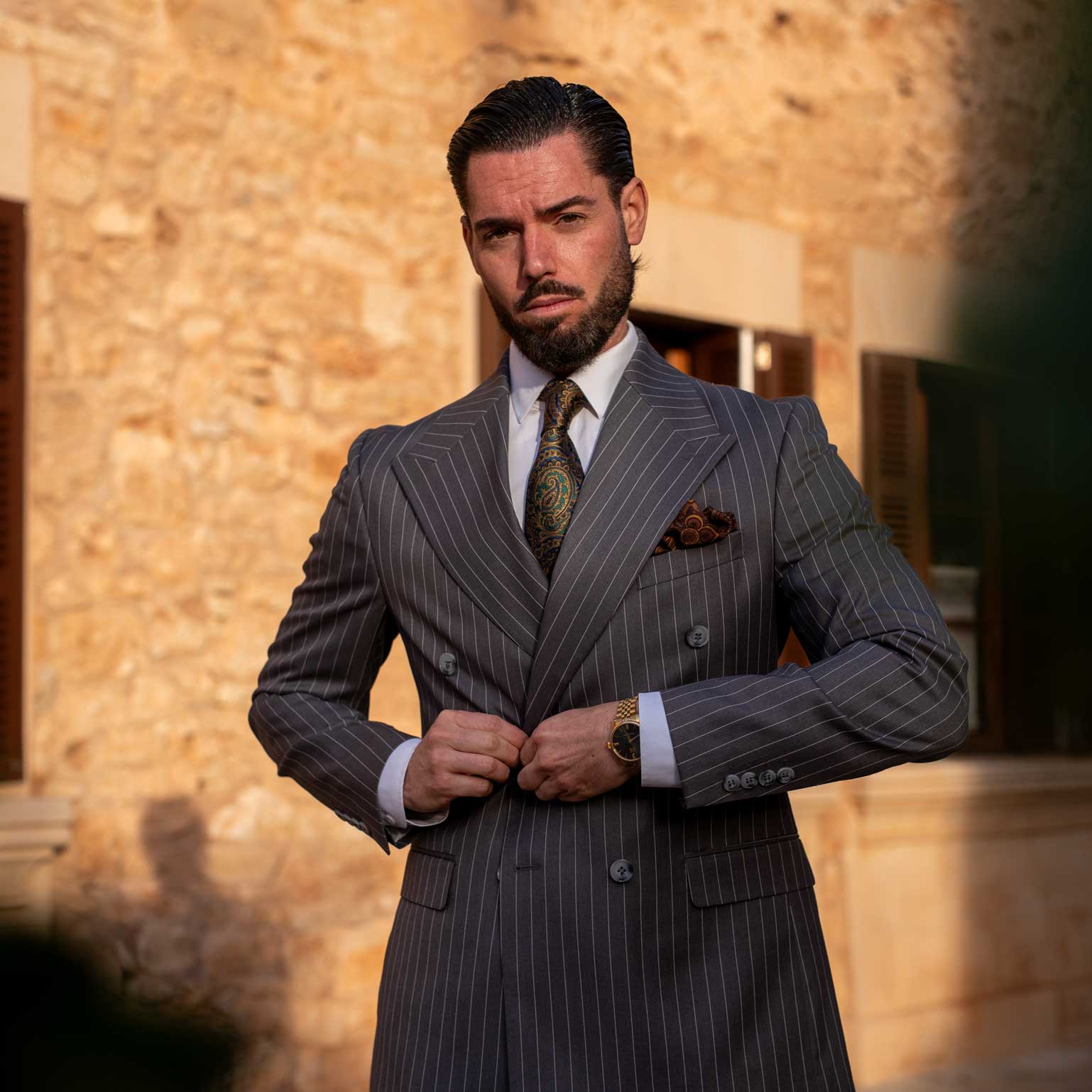 I had it woven in rich tones inspired by the San Carlo opera house in Naples. Colors that feel at home under a chandelier or across the table at a serious meeting.