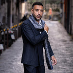 Our versatile Pasquino scarf. One side features a refined herringbone pattern, while the other boasts a classic paisley design, giving you two sophisticated looks in one scarf.