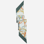 Silvia is a long, skinny silk scarf (also called a bandeau or large twilly), made in Como, Italy from 100% silk twill. Tie her around your neck, wrist, bag, or hair.