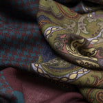 It’s one of my favorite spots, and this scarf brings together some of my favorite patterns—paisley, houndstooth, and a touch of geometric design, all wrapped into one.