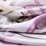 The delicate iris floral design with ribbons adds a soft, feminine touch, while the hand-rolled hems bring a bit of artisanal love to every edge.