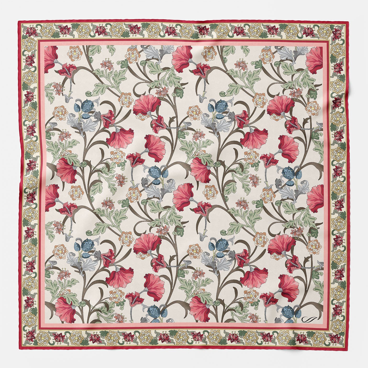 Your silk square has a slightly dull sheen because we give it a special final washing. This results in a soft, less shiny finish, which is the ultimate in sophistication.