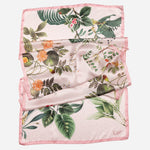 Made from 100% silk in a satin weave, it's buttery soft with a beautiful sheen that catches the light just right. It drapes beautifully, adding a soft, romantic touch to any outfit. Let this scarf be your go-to accessory for infusing a bit of Italian garden elegance into your daily style.