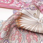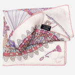 Delicate illustrations of lace and folding fans - known as ventuole - dance across the silk, echoing the ornate accessories still fluttered by masked revelers in St. Mark’s Square each Carnival season—just as they once were by noblewomen of the 18th century.