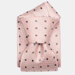 This refined design features a beautifully woven chevron pattern in pale pink, subtly textured to catch the light. Grey polka dots add a touch of playful sophistication—classic yet unexpected, much like the road it’s named after.